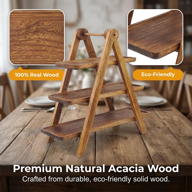 GRADUATED THREE-TIER DESIGN - Features an A-frame structure with three graduated trays. This smart design provides ample space for various dishes while maintaining stability on your dining table.