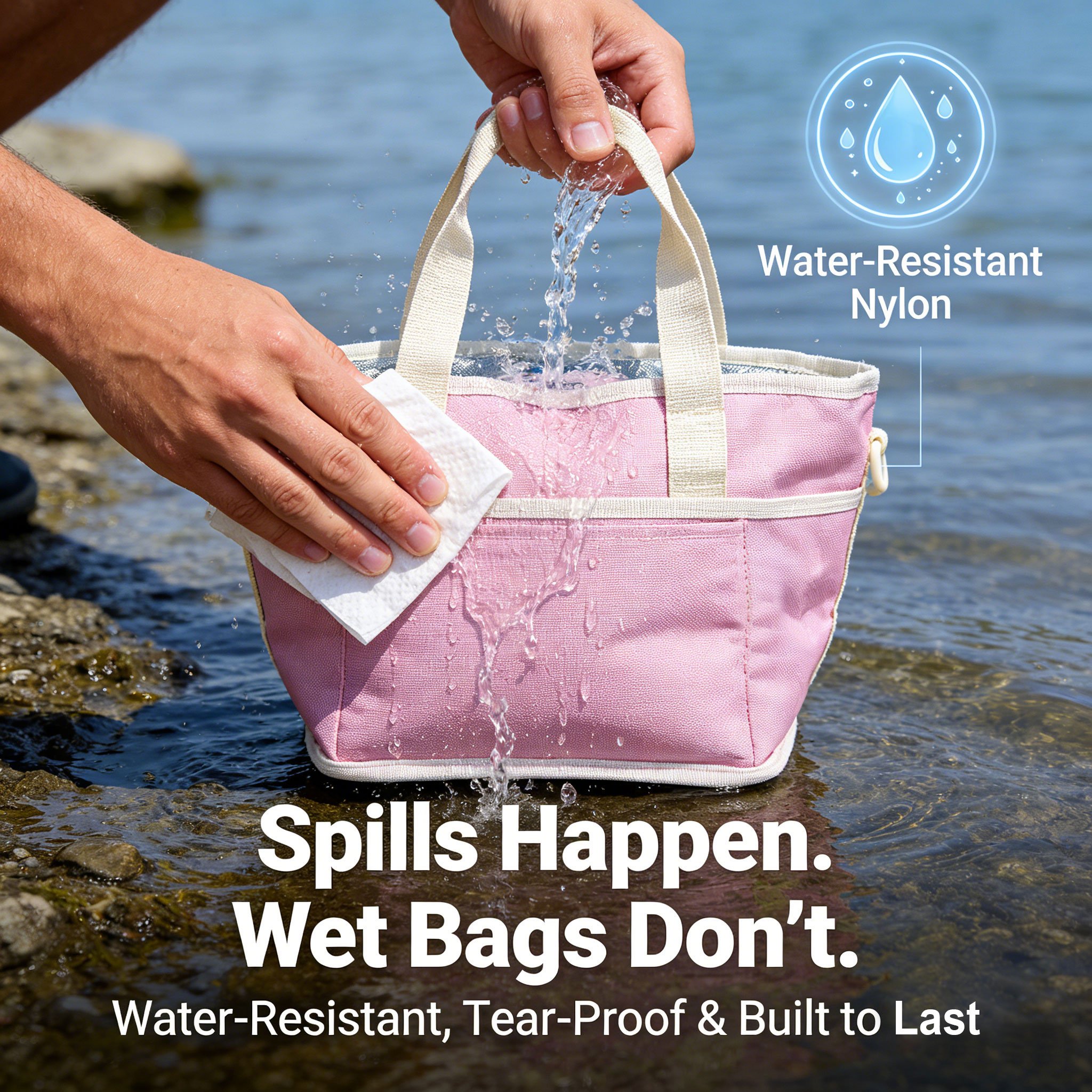 Unlike cheap neoprene or disposable carriers, this bag uses robust nylon fabric with a sturdy base that resists water, fading, and tears—built to last through active family life.
